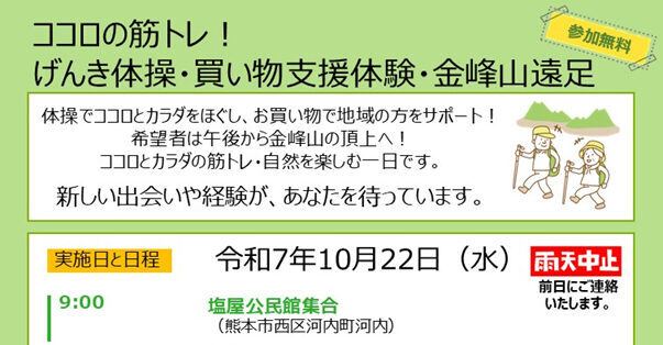 ココロの筋トレ!げんき体操・買い物支援体験・金峰山遠足(ローソン熊本河内店・熊本市介護予防サポーター)